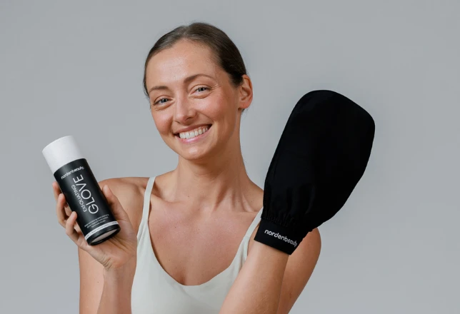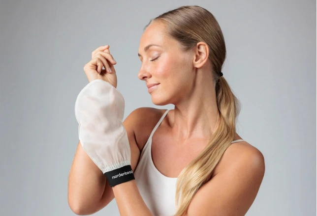 Mėgaukis prabangiai puoselėjama oda su Nordenbeauty šveitimo pirštinėmis.
