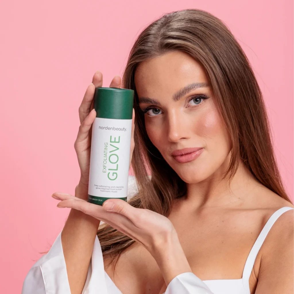 Mėgaukis prabangiai puoselėjama oda su Nordenbeauty šveitimo pirštinėmis.